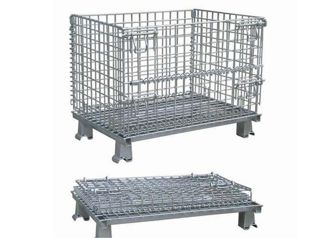 倉儲籠的主要原材料是高線拉成的強力鋼絲,一般絲徑是 5mm, 6mm, 6.4mm。網(wǎng)片焊接的網(wǎng)目間距一般為50×100,100×100,50×50。倉儲籠底部采用U型鋼焊接而成,U型鋼是冷軋帶鋼軋機軋制而成,底部四角采用沖壓件一次沖制而成。