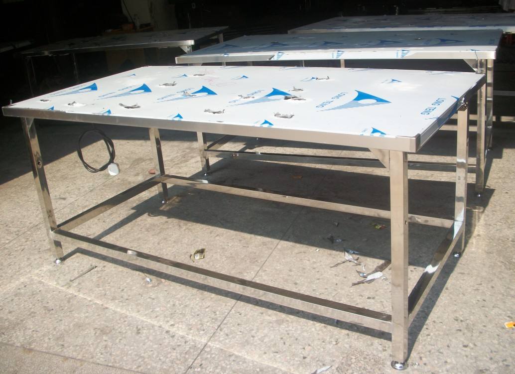 2、采用不銹鋼材質(zhì)結(jié)構(gòu),主要采用不銹鋼方通,不銹鋼板,工作臺底腳采用腳杯可上下調(diào)節(jié),以適應(yīng)不平地面,臺面可以鋪防靜電膠墊,達(dá)到防靜電效果,從而成為其中防靜電不銹鋼工作臺。有些可以鋪木板,增架承重量,然后包木板,包邊,采用正面排風(fēng),排風(fēng)板整體可拆卸。不銹鋼工作臺可以配光管,從而達(dá)到照明效果。